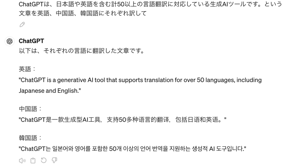 - ChatGPTは50以上の言語翻訳に対応した生成AIツール