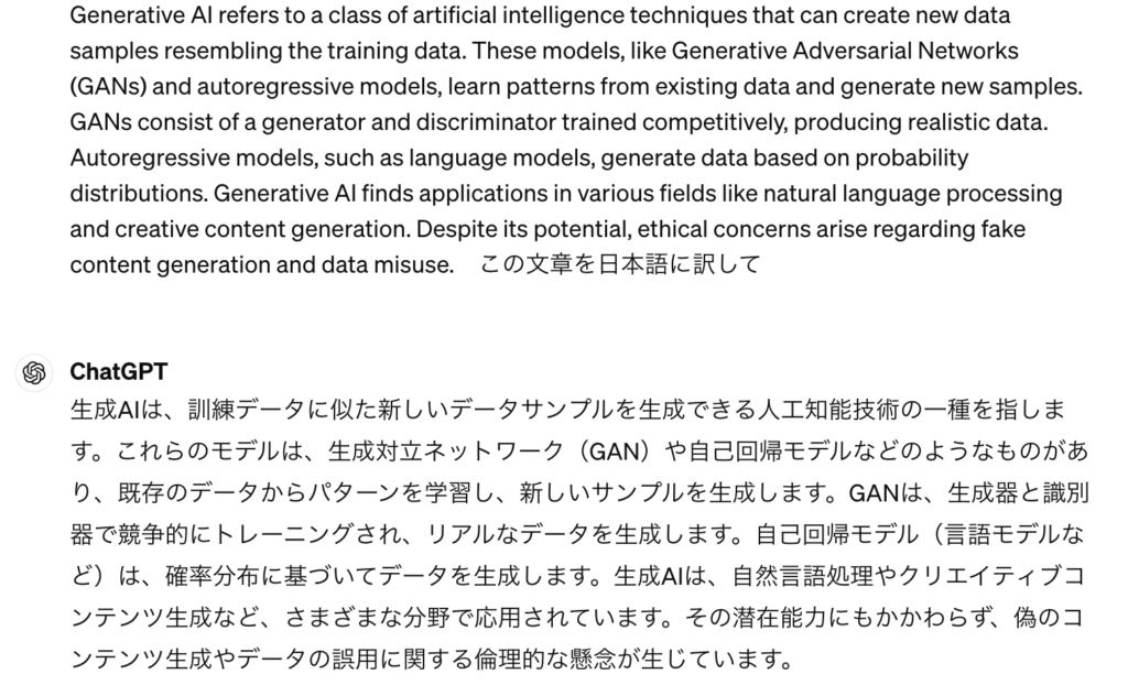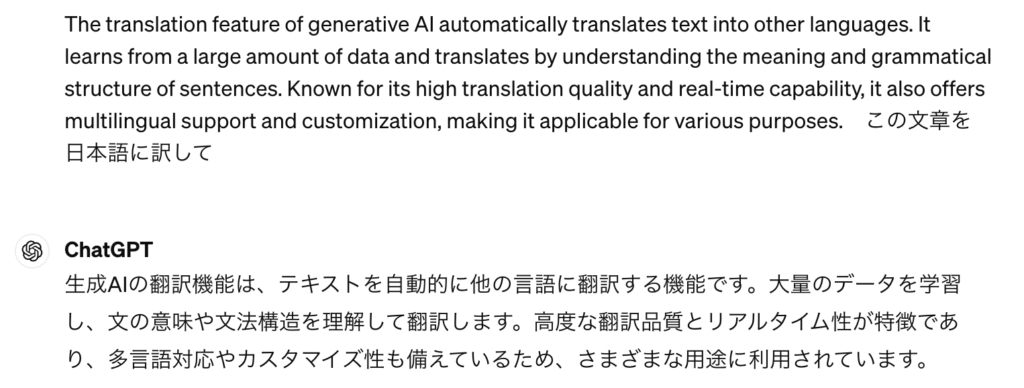 外国語の文章をChatGPTにそのままコピペし、日本語に訳してもらうこともできます。