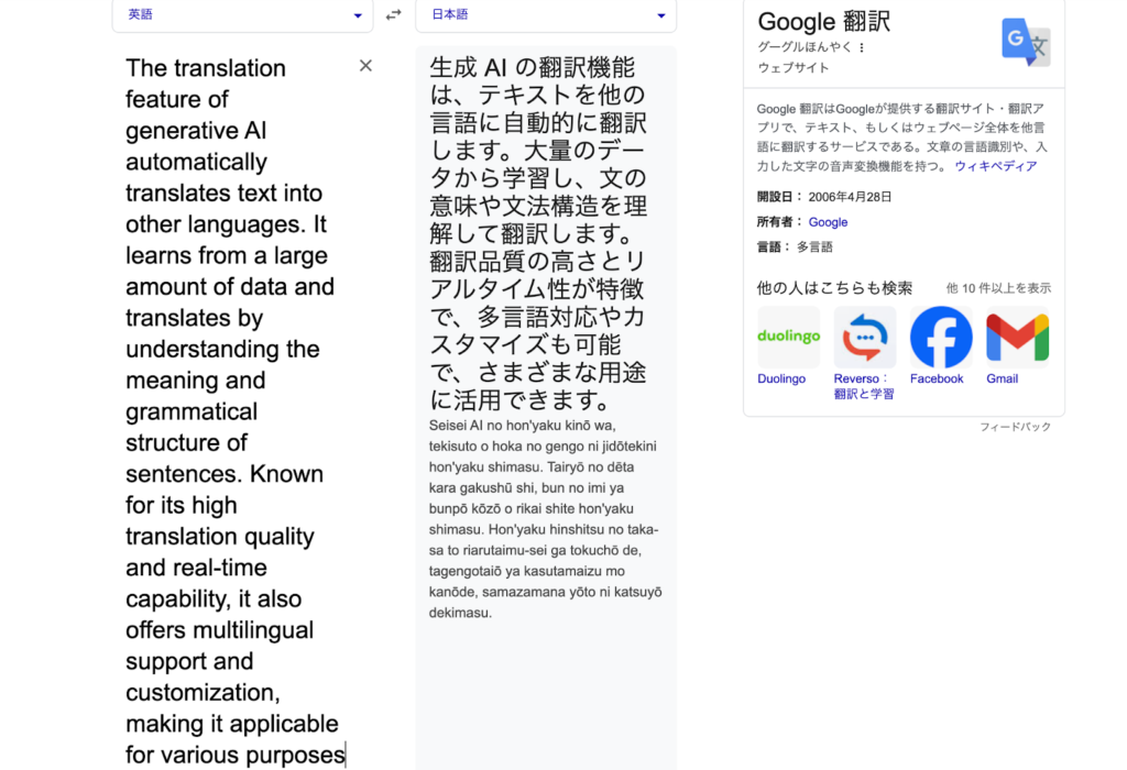 外国語を翻訳できる生成AIには、ChatGPT以外にもDeepLやGoogle翻訳といったツールがあります。